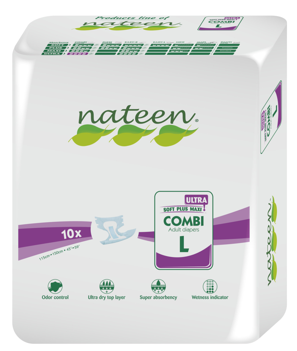 Escolher uma fralda de adulto unissexo Nateen Combi Ultra significa escolher um produto que atenda às suas necessidades específicas. Confie neste produto para ajudá-lo a recuperar a confiança, o conforto e a tranquilidade total n o seu dia-a-dia.